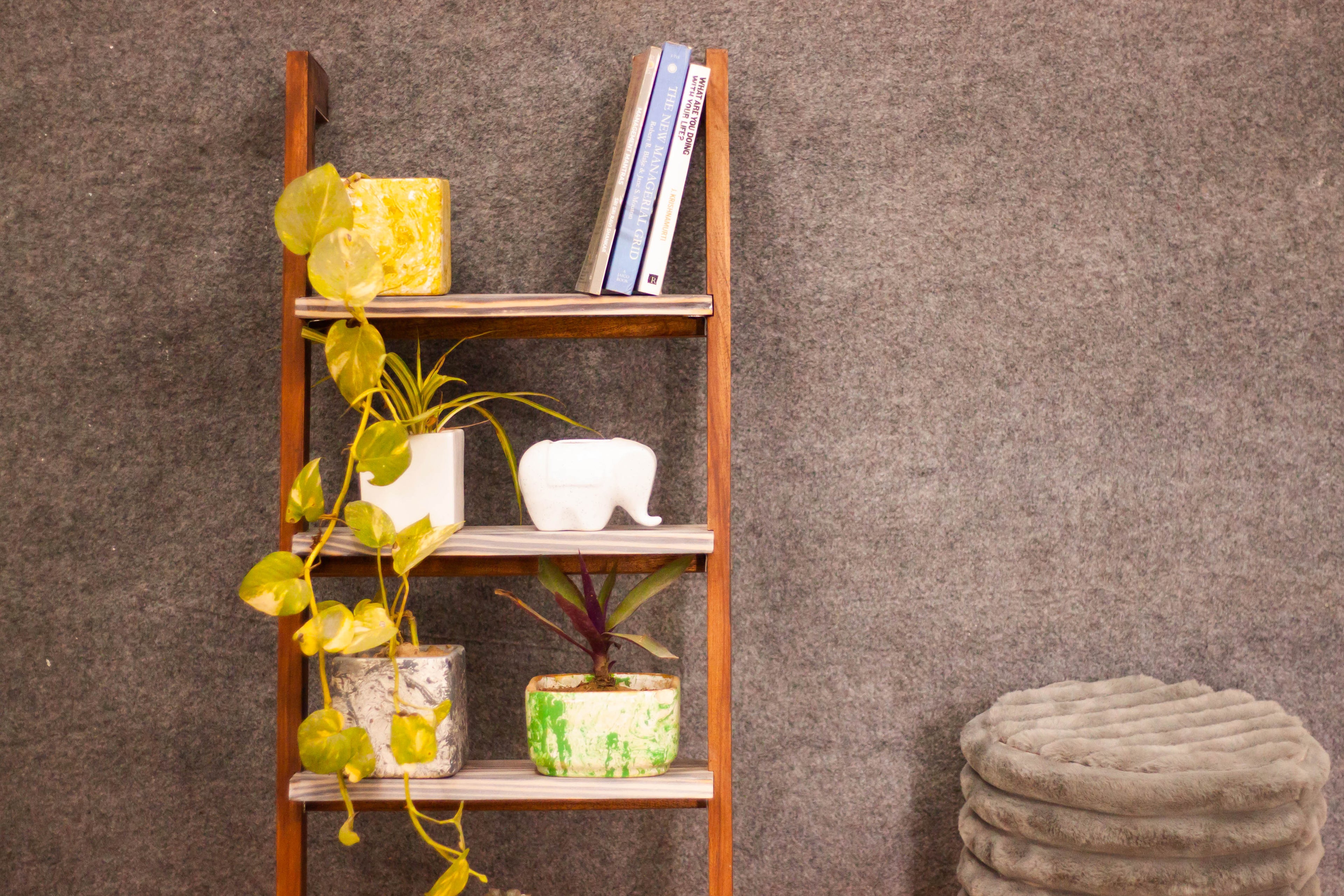Multipurpose Solid Wood Ladder Shelf For Planters And Books